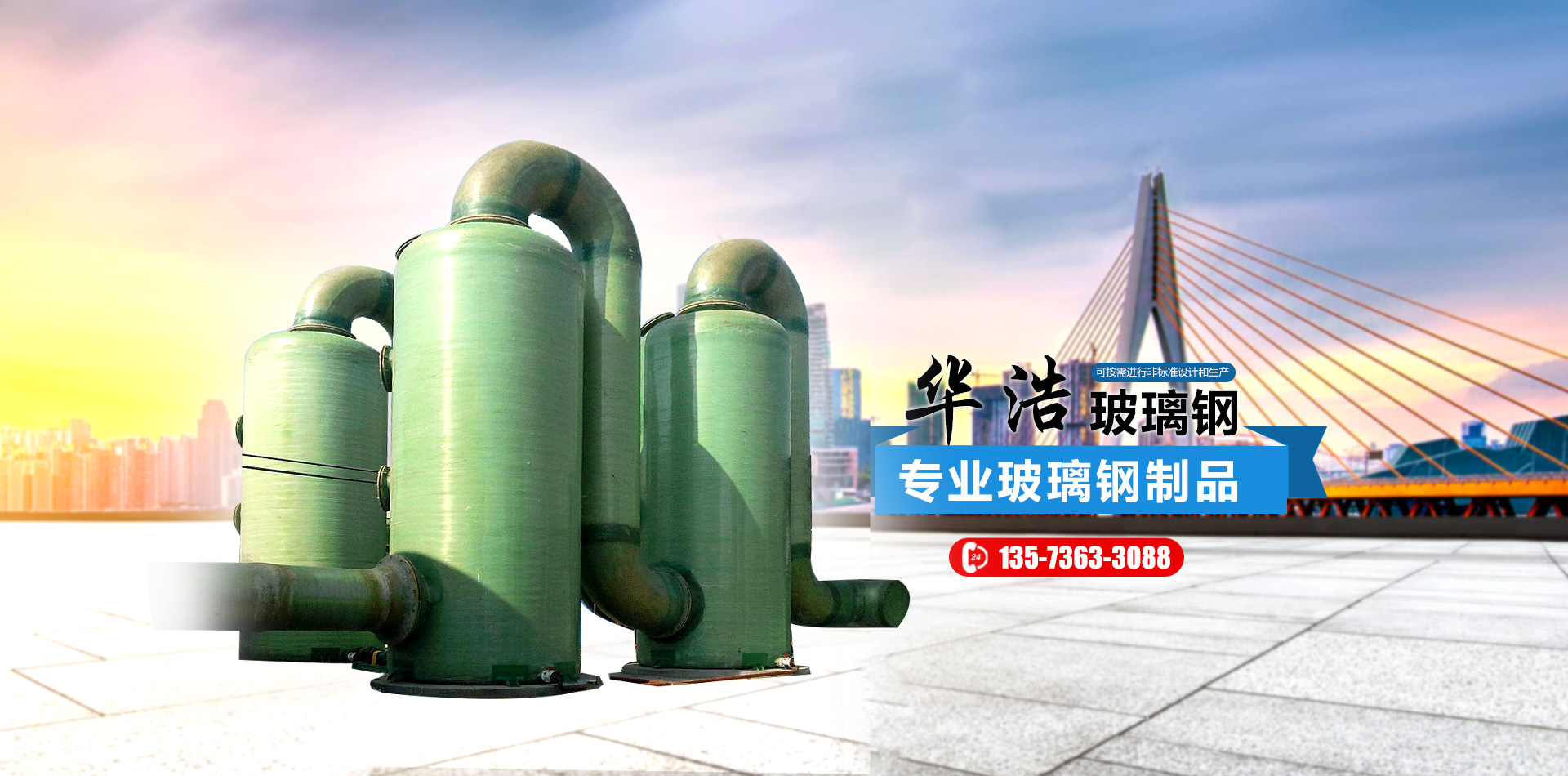山東華浩玻璃鋼有限公司,位于世界風(fēng)箏都濰坊市南三十公里處,是生產(chǎn)各種玻璃鋼制品的專業(yè)公司。   華浩玻璃鋼生產(chǎn)各種立式、臥式玻璃鋼罐、玻璃鋼儲罐、玻璃鋼運輸罐、標(biāo)準(zhǔn)運輸罐、玻璃鋼鹽酸罐、化學(xué)反應(yīng)罐、真空壓力罐、設(shè)備罐、復(fù)合罐、玻璃鋼儲槽、大型玻璃鋼容器;玻璃鋼化糞池;各種型號的橫流式、逆流式(圓形、方形)玻璃鋼冷卻塔;機(jī)械纏繞玻璃鋼管道、管件、壓力管道,有機(jī)、無機(jī)通風(fēng)管道、空調(diào)管道;漂液洗鼓、耐腐耐高溫反應(yīng)釜、印染布車、組合式玻璃鋼水箱、玻璃鋼風(fēng)機(jī)、玻璃鋼不定型工藝品等二百多個品種。